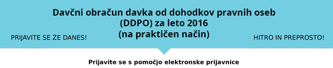- olajšave za 2016 (pokrivanje davčnih izgub v obračunu DDPO za 2016, olajšava za investiranje, vlaganja v raziskave in razvoj (inšpiciranje FURS!), olajšave za Pomurje, Pokolpje, Maribor s širšo okolico, Hrastnik, Radeče in Trbovlje, olajšave iz naslova zaposlovanja, za zaposlovanje invalidov, za izvajanje praktičnega dela, prostovoljno pokojninsko zavarovanje, donacije);