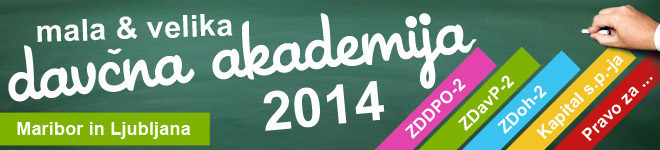 Izbrane teme s področja DDPO, podjetnikovega kapitala, prava za računovodje/revizorje/davčne svetovalce, davčnega postopka in dohodnine s praktičnimi primeri podajajo množico rešitev in odgovorov na aktualna vprašanja in dileme davčnih zavezancev. Davčna akademija predstavlja ustrezno nadgradnjo in osvežitev vašega znanja, pridobljenega v naši davčni šoli ali v poslovni praksi. Davčna akademija 2014 – predavatelji iz prakse za praktične slušatelje! |