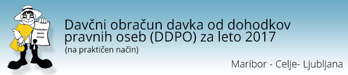 - olajšave za 2017 (pokrivanje davčnih izgub v obračunu DDPO za 2017, olajšava za investiranje, vlaganja v raziskave in razvoj, olajšave za Pomurje in na problemskih območjih z visoko brezposelnostjo (ZSRR-2), olajšave iz naslova zaposlovanja, za zaposlovanje invalidov, za izvajanje praktičnega dela, prostovoljno pokojninsko zavarovanje, donacije);