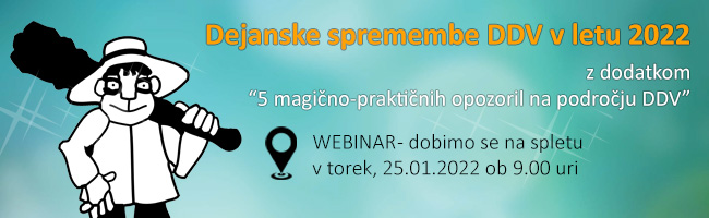 Državnemu zboru je končno uspelo implementirati spremembe ZDDV-1, ki so že bile predvidene za uporabo od 01.07.2021 naprej. Nekatere spremembe, ki so predmet novele M ZDDV-1 v povezavi s prodajo blaga na daljavo in uvozom blaga v Unijo, izvajamo v Sloveniji že od 01.07.2021 naprej s »pomočjo« posebnega pravilnika, tj. Pravilnika o obveznostih glede DDV v zvezi z direktivami Sveta (EU), ki veljajo za opravljanje storitev in prodajo blaga na daljavo. Ker te ne predstavljajo novosti v slovenskem prostoru v letu 2022, ne bodo predmet tega webinarja, temveč se bomo posvetili ostalim (dejansko novim) spremembam, za popestritev pa se bomo dotaknili tudi 5 področij/primerov, ki so predmet novejše sodne prakse in/ali standardnih napak na področju DDV.