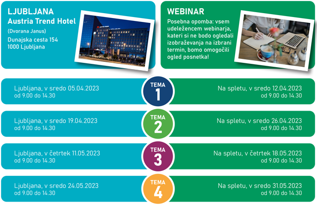 LJUBLJANA Sreda, 05.04.2023 | WEBINAR (na spletu) Sreda, 12.04.2023