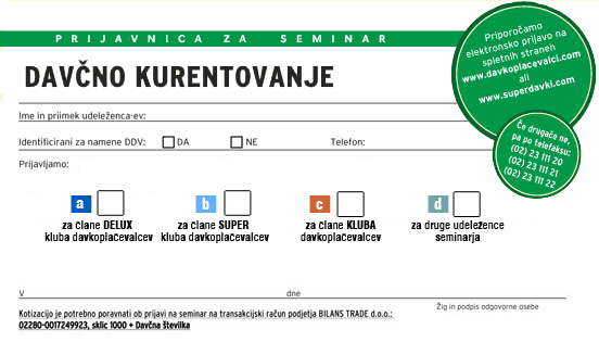 • na spletnih straneh www.superdavki.com (samo člani DELUX Super kluba davkoplačevalcev);