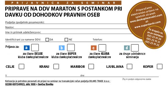 • na spletnih straneh www.superdavki.com (samo člani DELUX Super kluba davkoplačevalcev);