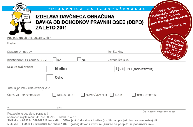 - na spletnih straneh www.SuperDavki.com (samo člani DELUX/Super kluba davkoplačevalcev);
