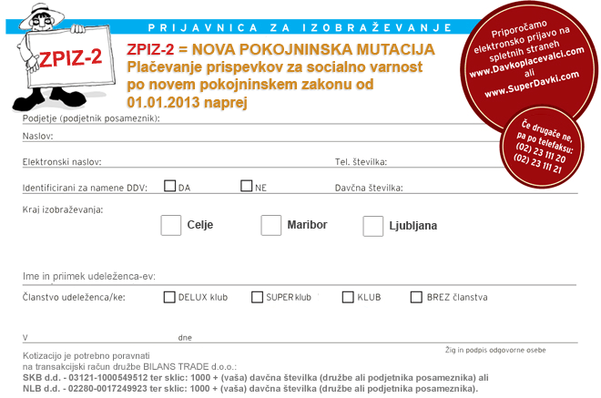 Vašo prijavo in plačilo kotizacije za seminar pričakujemo najkasneje dva dni pred izvedbo seminarja.