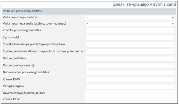 prevoznega sredstva predmet DDV, postopek predložitve obrazca