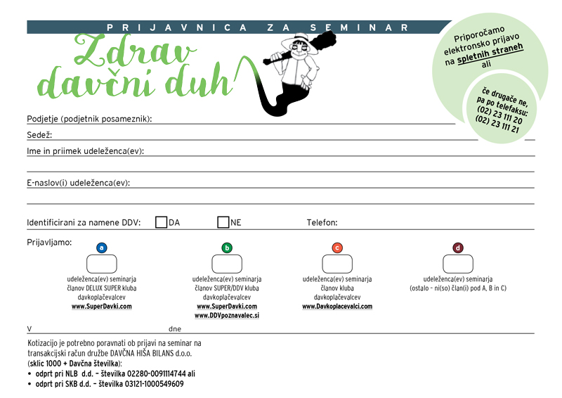 • na spletnih straneh www.SuperDavki.com (samo člani DELUX/Super kluba davkoplačevalcev);