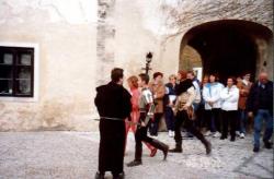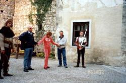 V polnem številu smo se zbrali na grajskem dvorišču gradu Otočec. Toplo vreme, kozarček cvička v rokah ...